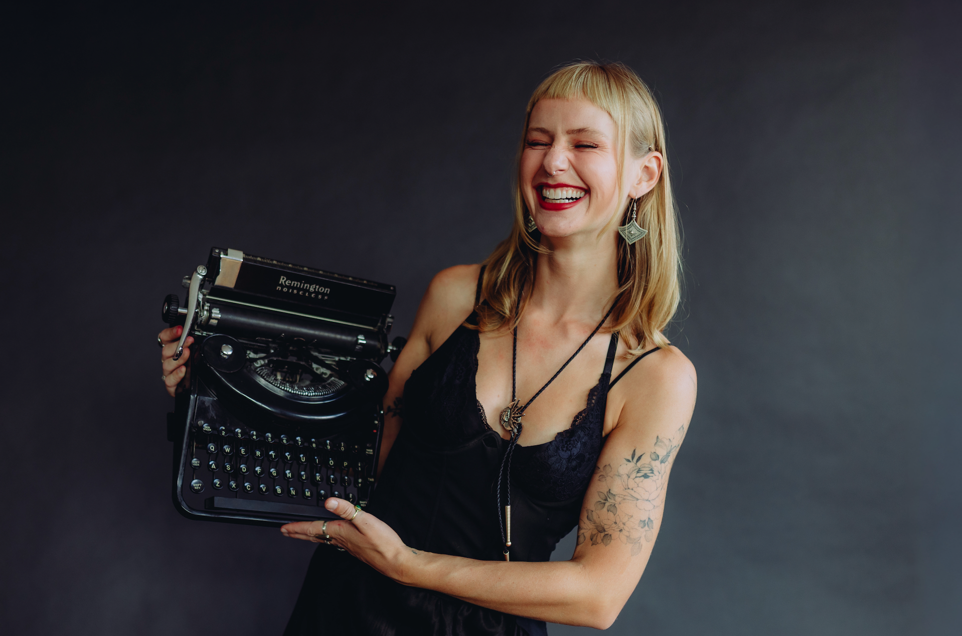 First on her great grandfather's 1931 Remington Noiseless and now using a fleet of 15 different specialty typewriters, she is an expert in the craft of listening to people's stories and reflecting them back through the written word.